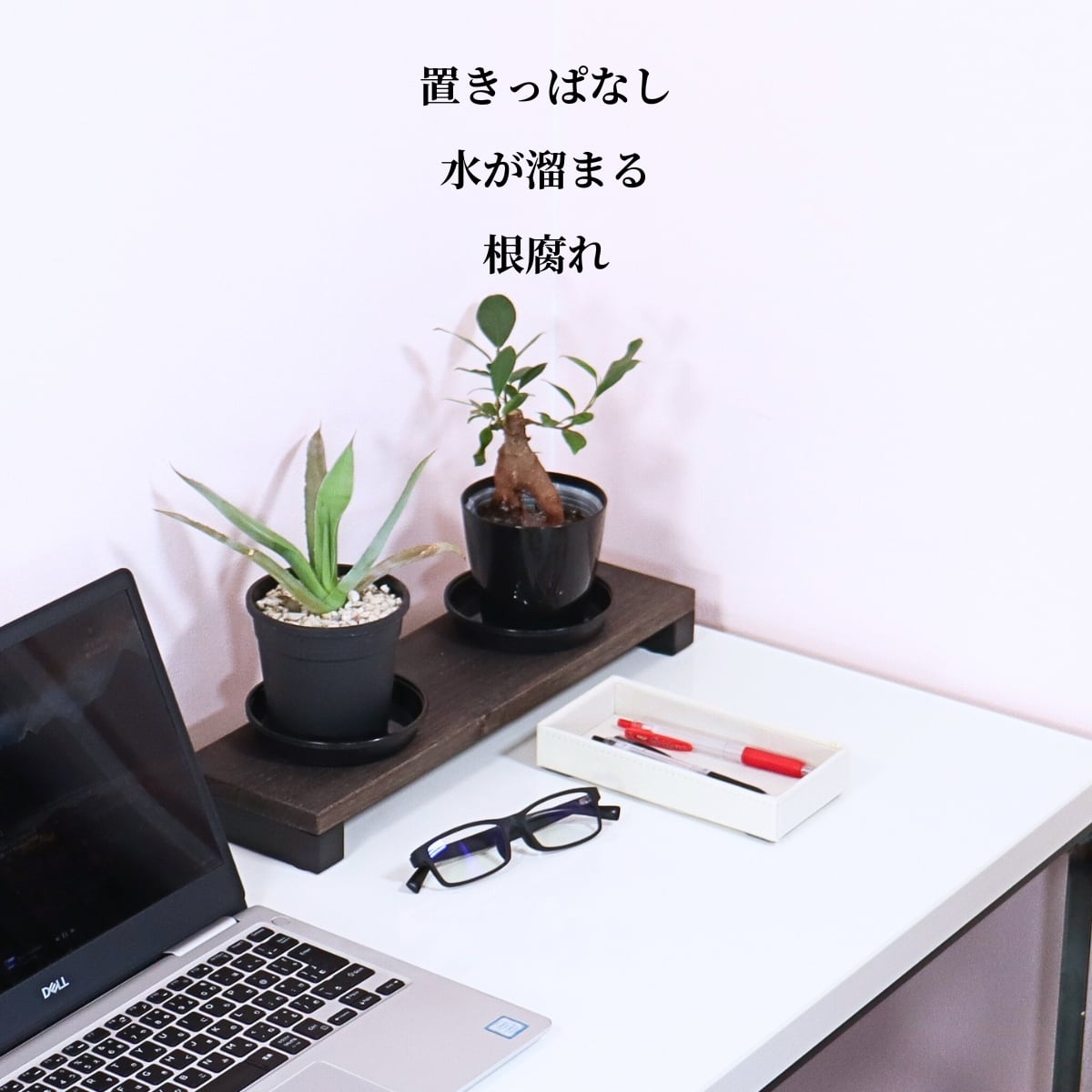 鉢を受け皿に直接置くと、底の穴がふさがって空気が通りません。