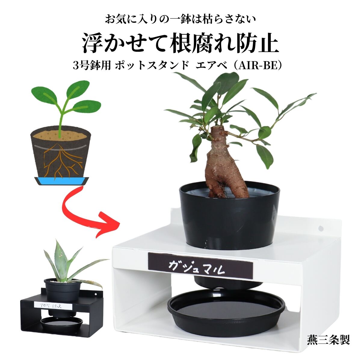 【根腐れ防止】大切な一鉢を守る。燕三条製 ポットスタンド エアベ [AIR-BE] 3号鉢専用