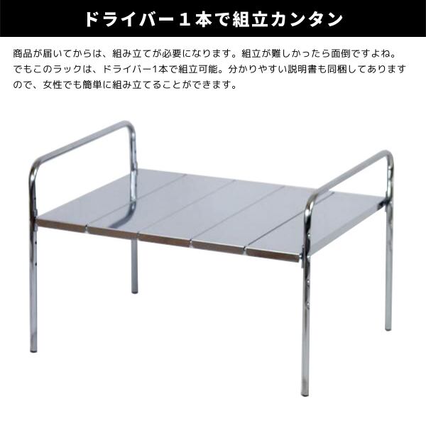・ドライバー1本でカンタンに組み立てれるステンレス製ラック
