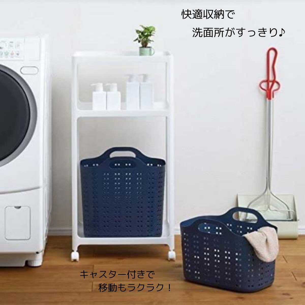 上中下の3段構成になっているから家族の洗濯モノを分けたり小物やタオルの収納が可能。